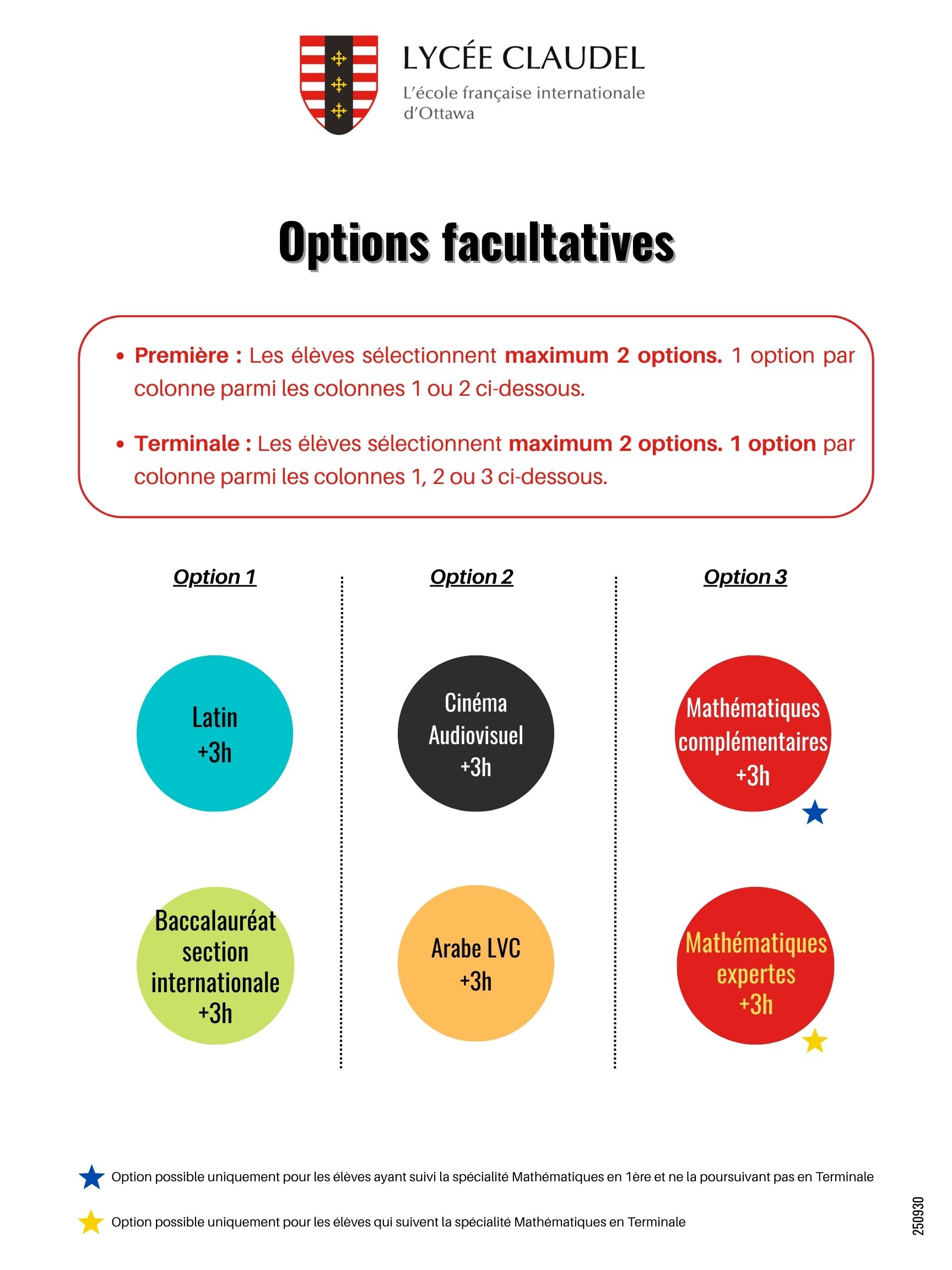 - the options and specialties offered according to the grade level and pathway selected by the high school students (Seconde | Première | Terminale).